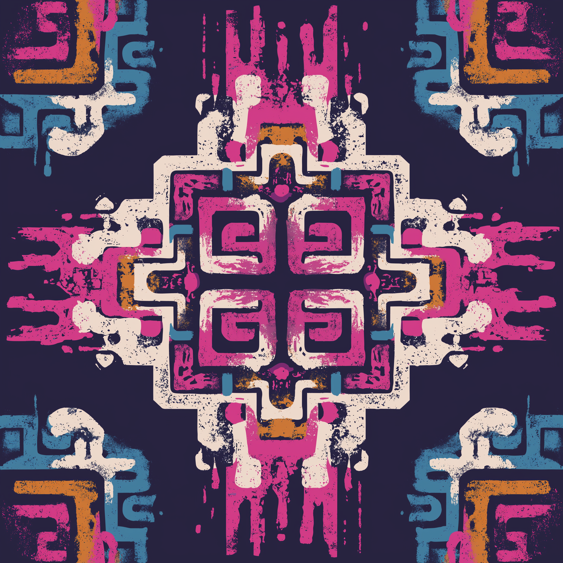 The Dream Totem Hoodie is built around symbols that feel discovered, not designed. Its repeating, hand-textured geometry draws from ancient pattern language and modern abstraction. Bold, imperfect, and quietly intentional. The palette balances deep midnight tones with saturated hits of magenta, teal, and warm earth hues, creating a rhythm that feels alive rather than ornamental.